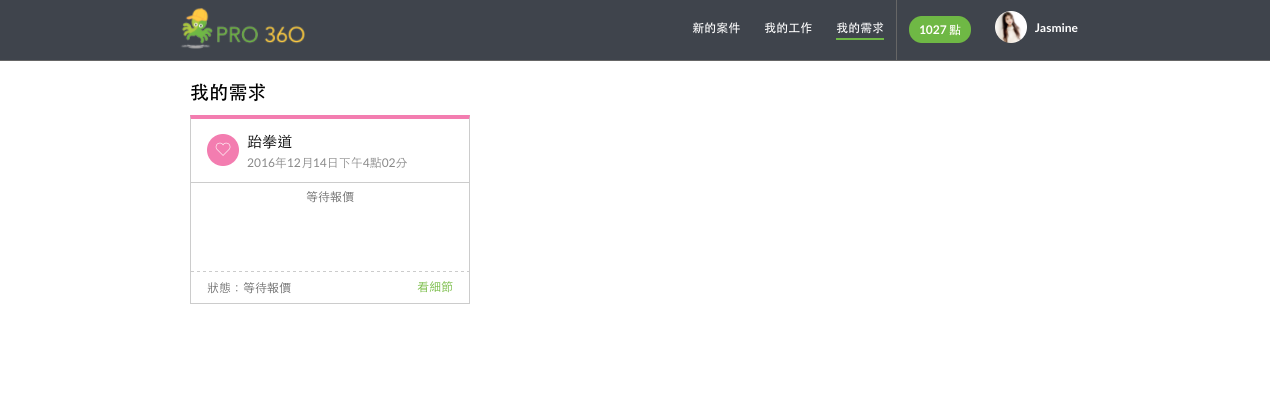 ▼當您建立了需求,您會直接進入個人帳戶的管理頁面,您可由此查看您所建立的所有需求。