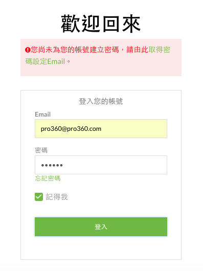 ▼若您尚未設定密碼並使用相同行動裝置重新登入,